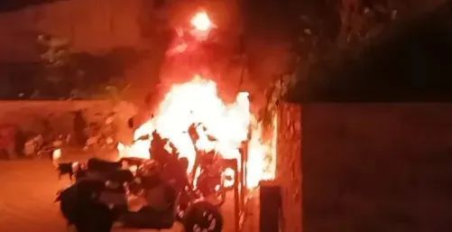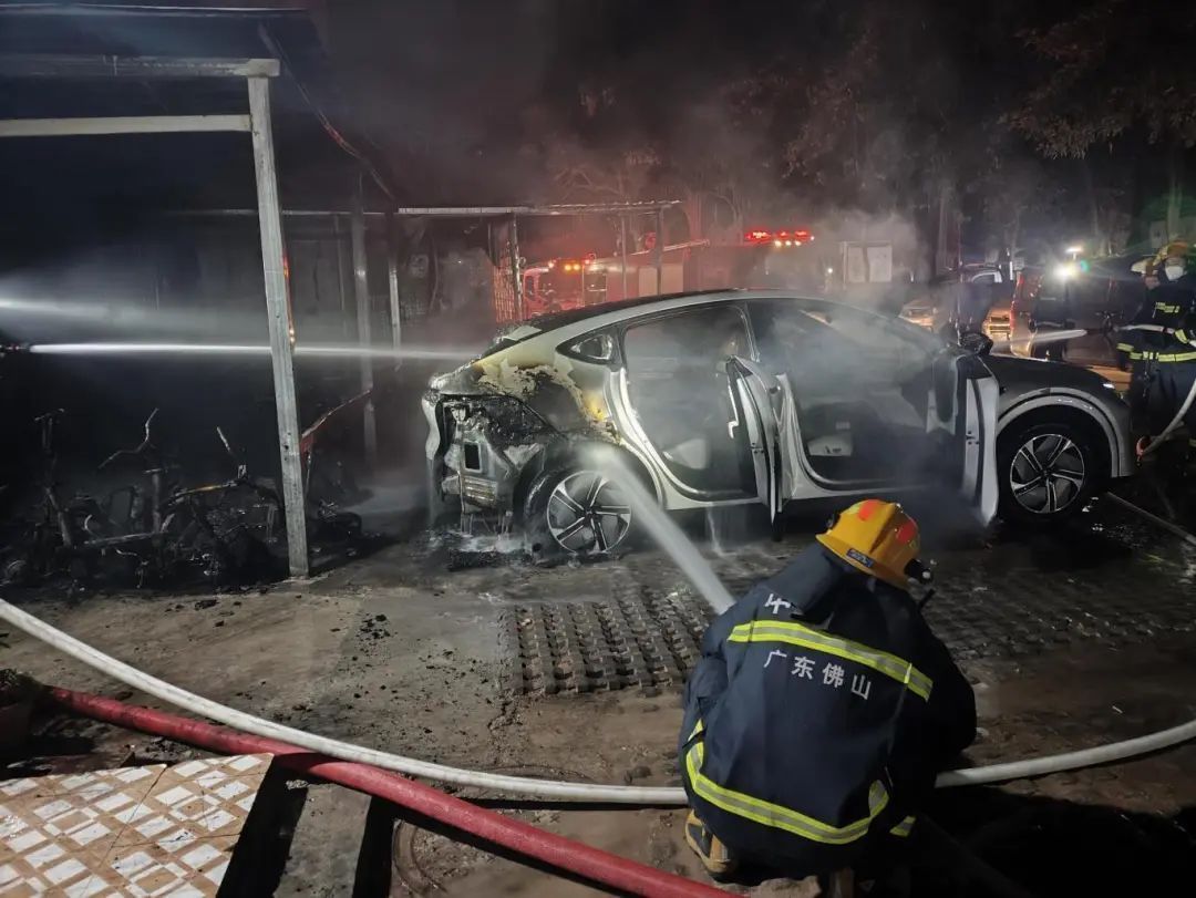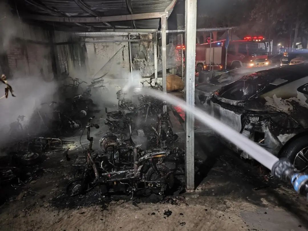 消防员到场发现起火车辆燃烧猛烈且火势蔓延至旁边停放的车辆消防员立即展开灭火作业快速将明火扑灭火灾导致10余辆电动车被烧毁2辆小轿车被引燃所幸无人员伤亡